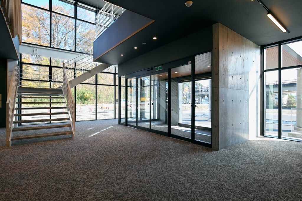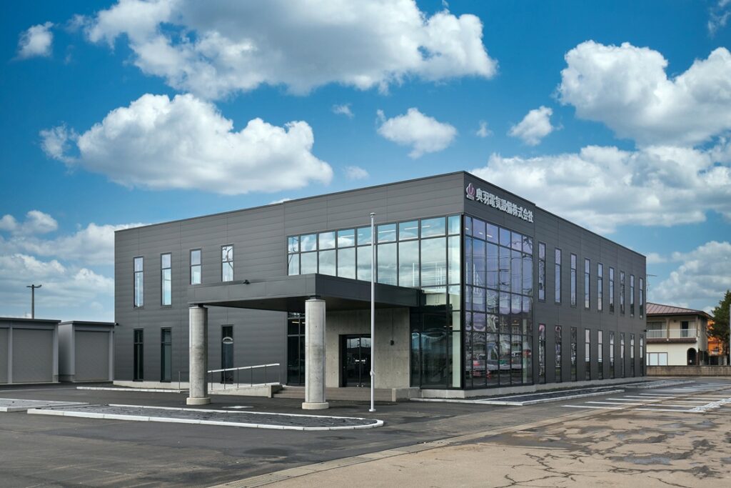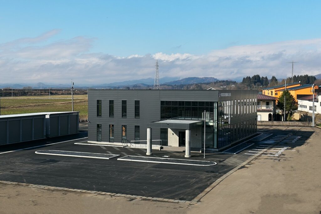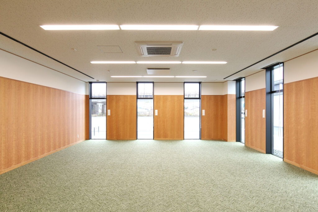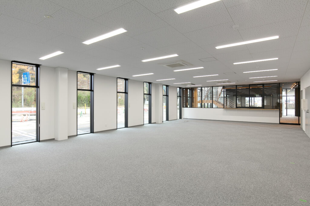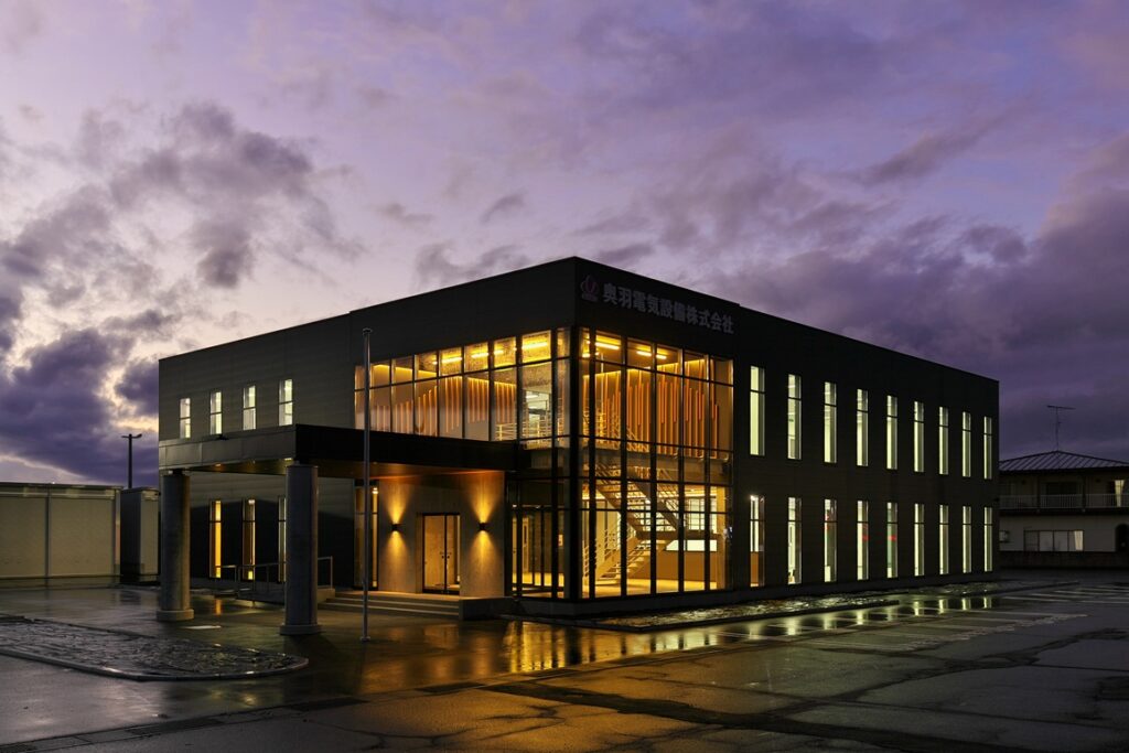 少し離れたところにある旧社屋は、会社の成長に伴い手狭になり、また、大型車両が通過するたびにかなりの揺れを感じる構造体であったため、別敷地への建て替えとなりました。木造の平屋から始まった計画案でしたが、将来のレイアウト変更に対応しやすい構造が求めらえたため、柱・梁以外は改造が楽な鉄骨造に落ち着きました。また、昨今のコストアップの影響は大きく、当初案からはかなり削った平面計画と、極力抑えた外装材の選択になっています。だからこそ、シンプルだけど居心地がいい空間を生み出すことに傾注しました。